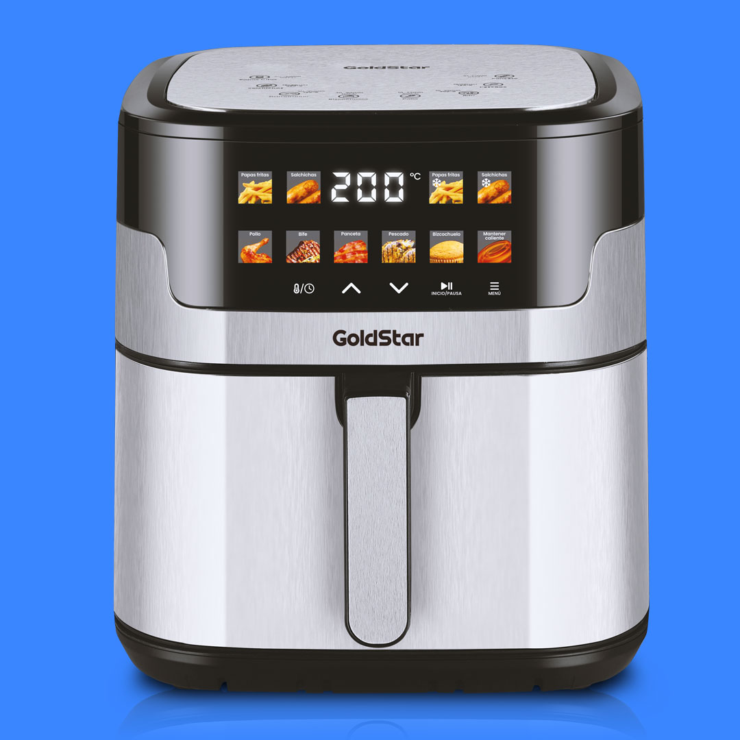 Revoluciona tu cocina con la Freidora Digital Color TOUCH: exclusivo display colorido, capacidad de 9,5 litros. Cocción sin aceite para comidas crujientes y jugosas.